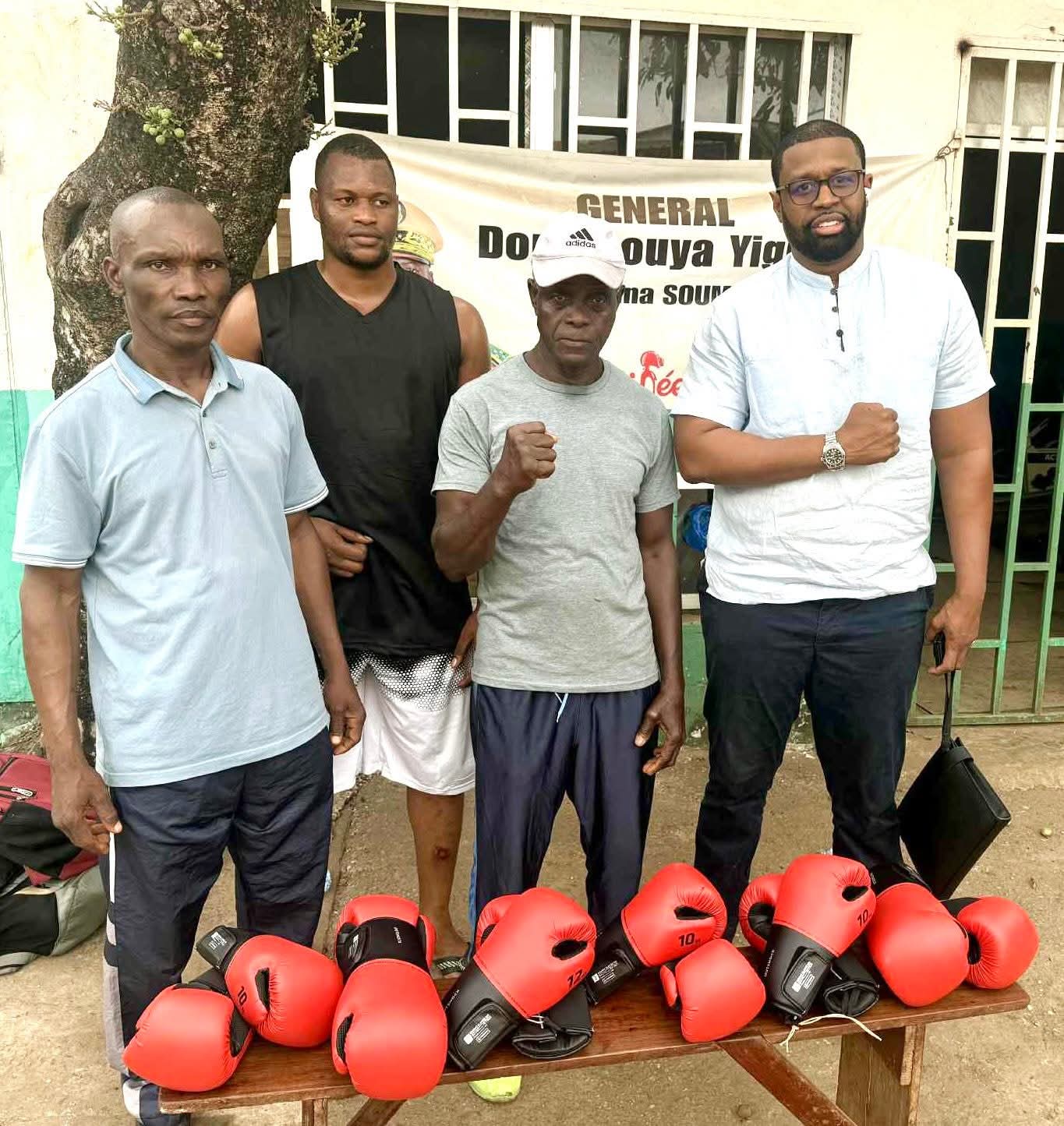 Le représentant du club Muhammad Ali Boxing Club de Conakry tient à exprimer sa profonde gratitude aux autorités de la boxe guinéenne, en particulier à M. Boubacar Biro Barry, pour le don de paires de gants qui nous a été offert.